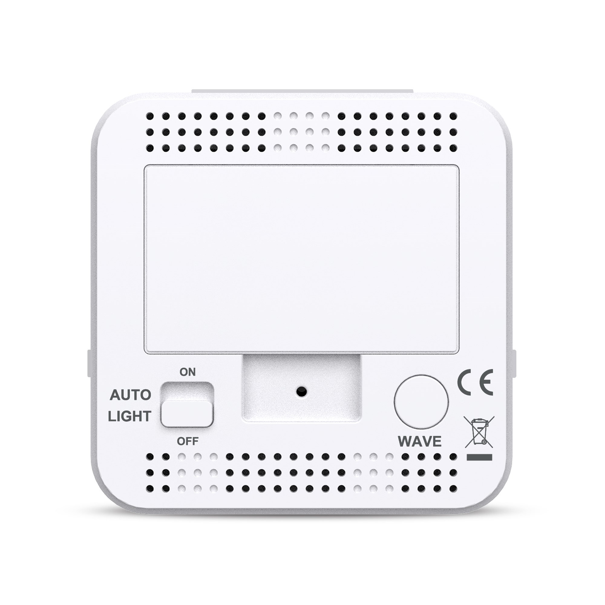 Digitální budík s časem řízeným signálem DCF-77 se speciální funkcí možnosti zapnutí automatického nočního osvětlení displeje. Měření vnitřní teploty a relativní vlhkosti.
