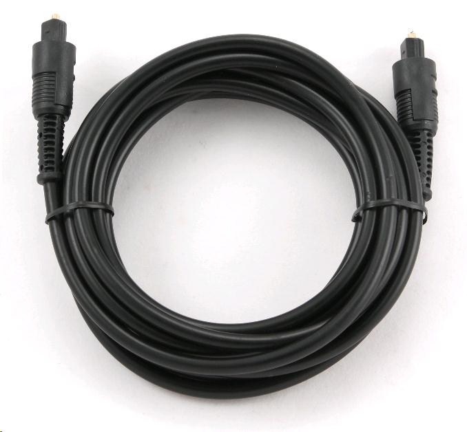 Optický kabel pro digitální propojení audio periférií s vynikajícím zvukovým přenosem signálu rychlostí světla. Oproti metalickým kabelům není ovlivňován elektromagnetickým rušením, způsobujícím chyby v přenosu nebo zkreslení zvuku (u analogového přenosu). Ideální řešení pro dosažení maximální kvality zvuku za všech podmínek. Parametry a specifikace: Typ: digitální optický audio kabel Konektory: 2x Toslink Délka: 3 m Barva: černá.