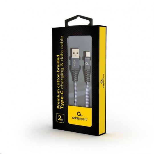 GEMBIRD Kabel USB 2.0 AM na Type-C kabel (AM/CM), 2m, opletený, šedo-bílý, blister, PREMIUM QUALITY