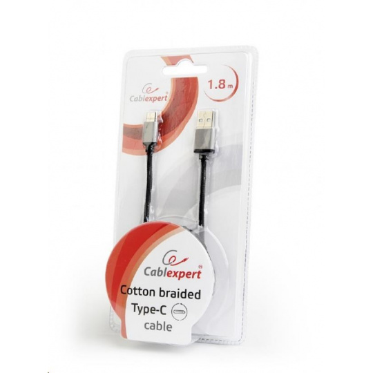 GEMBIRD Kabel USB na USB-C kabel (AM/CM), 1,8m, opletený, černý, blister
