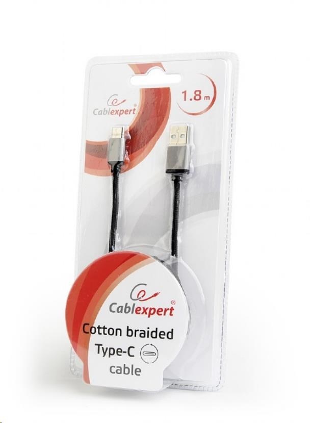 GEMBIRD Kabel USB na USB-C kabel (AM/CM), 1,8m, opletený, černý, blister