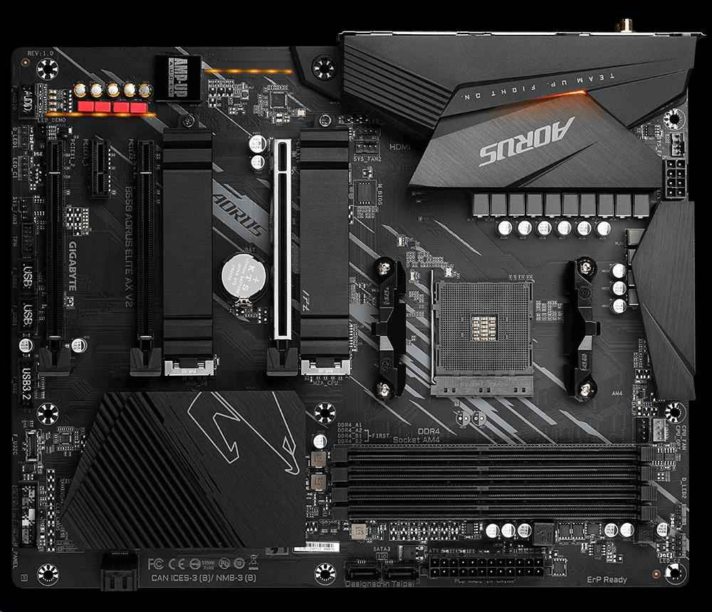 AMD B550 AORUS Motherboard with 12+2 Phases Digital Twin Power Design, Enlarged Surface Heatsinks, Dual PCIe 4.0/3.0 x4 M.2 with Dual Thermal Guards, AMD WiFi 6E 802.11ax, 2.5GbE LAN, Front USB Type-C™, RGB FUSION 2.0, Q-Flash Plus