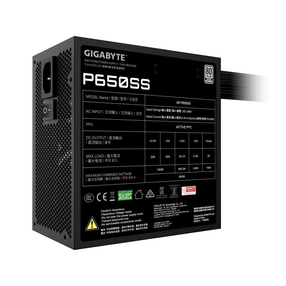 GIGABYTE zdroj P650SS, 650W, 80+ Silver, 120mm, ATX 3.0, černá