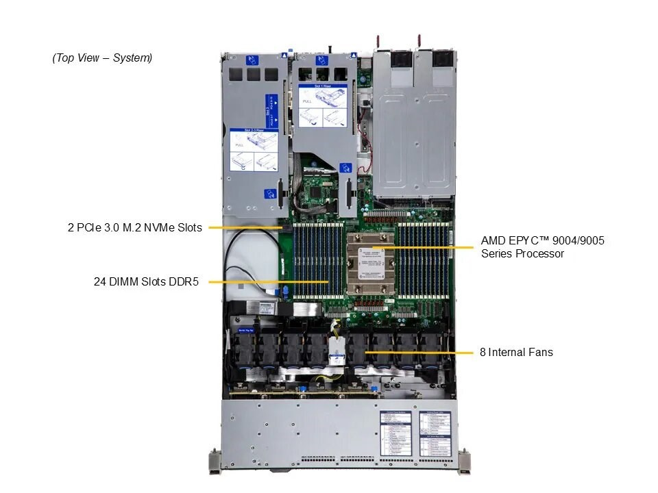 | Procesory | 1x AMD EPYC™ 9004/9005* Series Processors (*Podpora AMD EPYC™ 9005 vyžaduje revizi desky 2.x) |