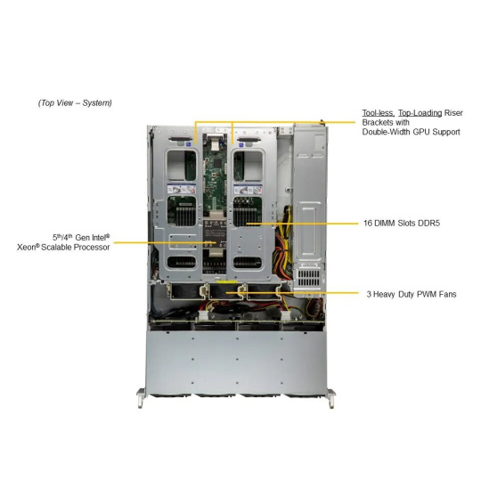 SYS-521C-NR-G1, 1x Intel® Xeon® 4510 (12Core/2.4GHz), 2x 64GB DDR5-5600, 2x 960GB M.2 NVMe SSD, 1x Dual 10GbE RJ45, s 2x 1200W Titanium Level.... více
