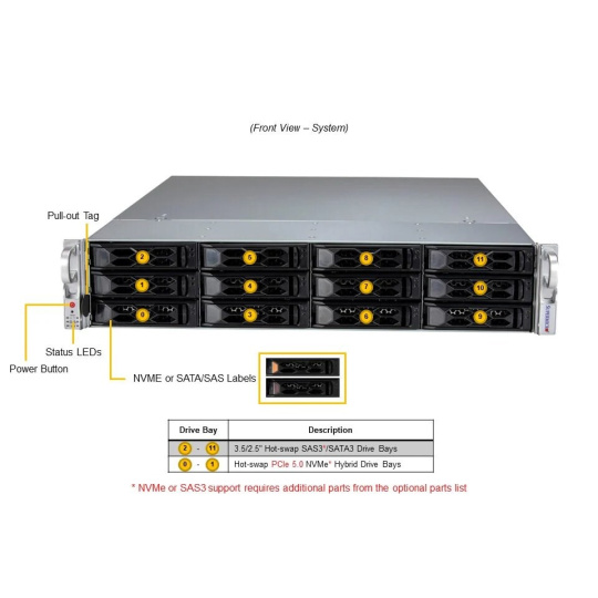 Úložiště Až 12x 3.5" SATA hot-swap + 2x M.2 NVMe