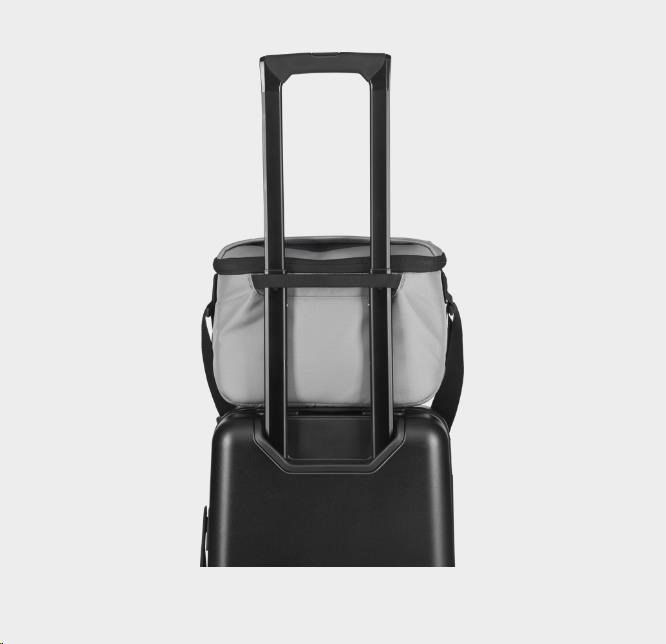 Kromě úložných možností je její design mistrem pohodlí a odolnosti. Nastavitelný ramenní popruh s polstrováním zajišťuje pohodlné nošení a je zpevněn robustními otočnými nýty. Přídavné madlo je ideální pro rychlé vyzvednutí. Objevte kapsu na zip, která odhaluje dvě přihrádky z elastické síťoviny uvnitř víka a zlepšuje tak organizaci.