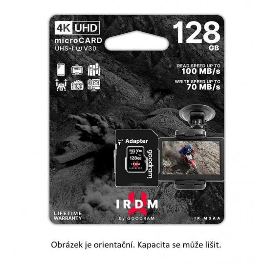 MicroSD karta IRDM UHS-I U3 přináší vysoký výkon a spolehlivost pro každého, kdo chce natáčet 4K a zpomalená videa nebo pořizovat vysoce kvalitní snímky JPEG/RAW v režimech rychlé série.