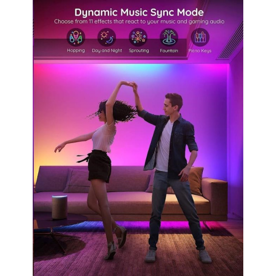 Úsporné interiérové chytré LED pásky Govee WiFi RGBIC PRO SMART 10m s životností až 50.000 hodin udělají z vašeho domu designový skvost. Můžete je použít prakticky všude - obývací pokoj, ložnice, kuchyň, pracovna atd. Zobrazují až 16 milionů barev, jejichž intenzitu lze nastavit od 1-100 % a díky technologii RGBIC si můžete rozdělit pásek na samostatné segmenty, pro které si pak můžete volit rozdílné barvy. Vyberte si ze 64 režimů osvětlení a při poslouchaní oblíbené hudby se budou světla synchronizovat díky vestavěnému mikrofonu a vytvoří nezapomenutelný zážitek. Nebo si prostě nastavte svoje vlastní barevné kombinace v režimu DIY. Příkazy můžete zadat také hlasem přes Siri, Amazon Alexa nebo Google Assistant, přes aplikaci Govee Home na chytrém telefonu nebo tabletu nebo přes Control box. Světlo má délku 10 metrů a jeho instalace je velice jednoduchá. Pomocí časovače můžete světla zapínat a vypínat automaticky podle západu a východu slunce, nebo usínání a vstávaní.