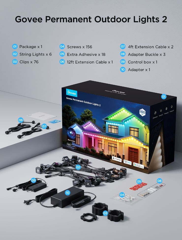 Govee RGBICW permanentní venkovní světla 30m Matter