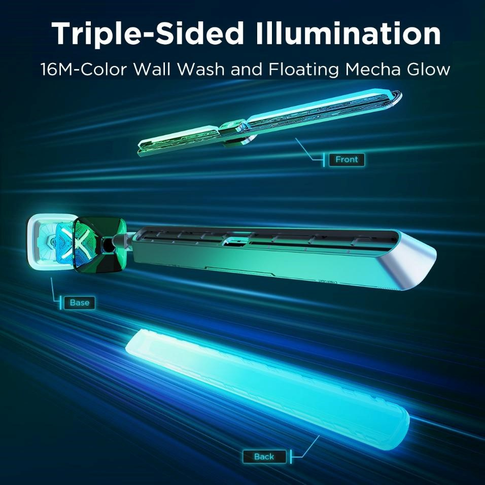 Panely nabízí unikátní trojité osvětlení s třemi samostatnými zdroji světla. Základna poskytuje pevnou oporu a výrazné světelné body, zadní strana vytváří jemné, rozptýlené světlo, které dodává prostoru příjemný odstín, a přední část s cyberpunkovými vzory, které dodávají celkovému efektu hloubku a styl. Tato kombinace umožňuje vytvořit bohatou a atmosféru, která skvěle doplní váš herní nebo multimediální zážitek.