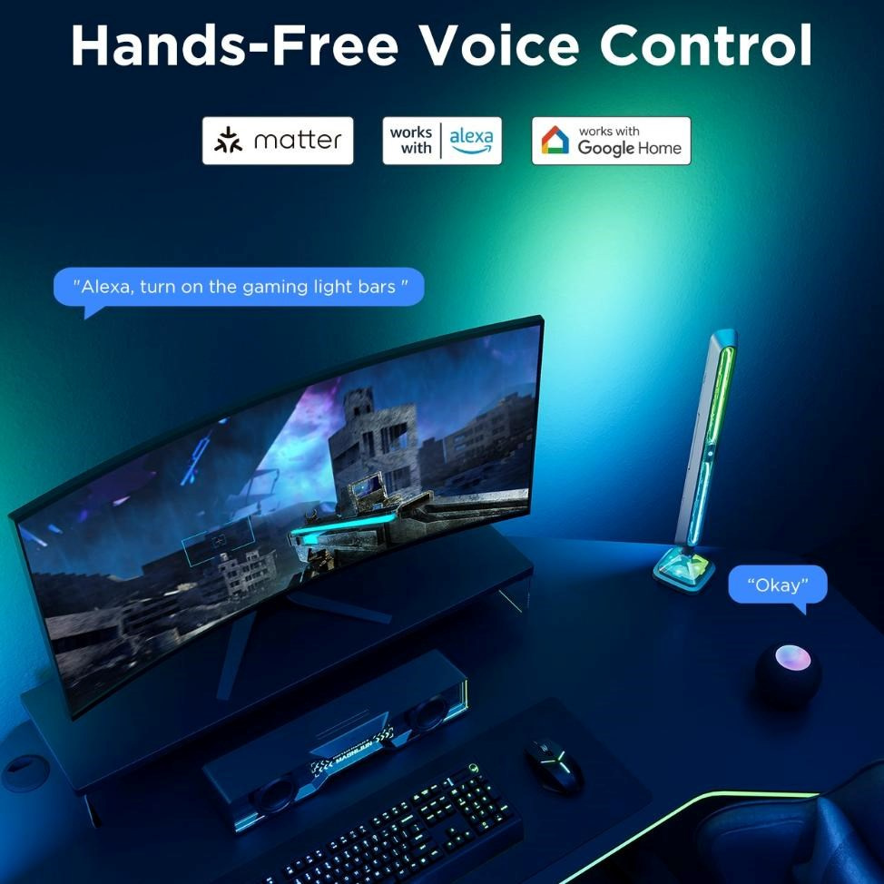 Panely byly navrženy s důrazem na všestrannost a pohodlí. Jsou kompatibilní s technologií Matter a podporují ovládání hlasem prostřednictvím oblíbených chytrých asistentů, takže můžete snadno měnit osvětlení bez nutnosti zdlouhavého nastavování. Kromě Google Home a Amazon Home, jsou kompatibilní i s gamerskými ekosystémy jako Razer Chroma nebo Corsair iCUE.