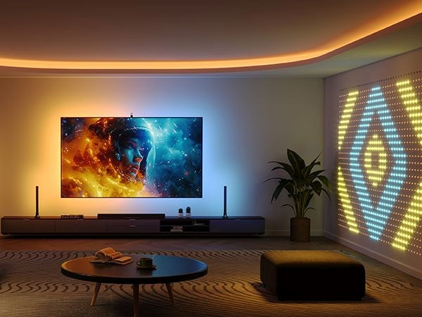 Sada osvětlení poléhá na přesnou reprodukci barev na obrazovce pomocí kamery. Ta je nově vylepšena o korekci zkreslení, takže podsvícení přesně navazuje na barvy na obrazovce a tím vytváří imerzivní vizuální zážitek. Kamera se pro kompatibilitu se soundbary umisťuje nad televizi a počítá i s ultra tenkými modely obrazovek.