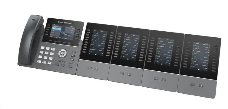 GBX20 je podsvícený LCD rozšiřující modul k IP telefonům GXV3350 a GRP2615. Modul obsahuje 20 dvoubarevných kláves a 2 klávesy se šipkami pro přepínání stránek. Na každém GBX20 můžete mít až 40 kontaktů/BLF (vidíte stav interní klapky). Při propojení až 4 GBX20, ke kompatibilním telefonům Grandstream, získáte celkem až 160 kontaktů/BLF.