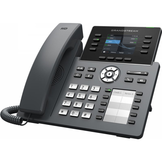 GRP2634 se vyznačuje se elegantním designem a sadou funkcí nové generace, včetně: 5cestnou hlasovou konferencí pro maximalizaci produktivity, integrované PoE a Wi-Fi, zvuku v plném HD rozlišení na reproduktoru i sluchátku pro komunikaci s maximální čistotou, Podpora EHS pro náhlavní soupravy Plantronics a USB pro podporu náhlavních souprav Grandstream řady GUV. Řada GRP obsahuje funkce zabezpečení na Enterprise úrovni včetně secure boot, duálního image firmwaru a šifrovaného uložiště dat. Pro zřizování a centralizovanou správu je GRP2624 podporován systémem Grandstream Device Management System (GDMS), který poskytuje centralizované rozhraní pro konfiguraci, provisioning, správu a monitorování nasazení koncových bodů Grandstream. Díky 32 virtuálním tlačítkům u LCD a 10 BLF tlačítkům vedle číselnice je GRP2634 ideální volbou pro zaneprázdněné profesionály a recepční, kteří potřebují spravovat vysoké objemy hovorů s pokročilými funkcemi. GRP2634 je navržený pro snadné nasazení ve velkých firmách, u poskytovatelů služeb a dalších velkoobjemových trzích, nabízí snadno použitelný a jednoduše nasaditelný hlasový koncový bod.