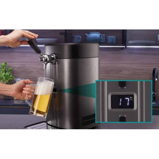 Výčepní zařízení HISENSE udrží pivo při optimální teplotě. Přednastaveno je 5 °C, ale můžete si nastavit teplotu od 3 do 12 °C - dle vašich preferencí. O vše se postará super tichý termoelektrický chladicí systém. Na LED displeji se zobrazuje aktuální teplota, takže snadno zjistíte, kdy je pivo připraveno k čepování.