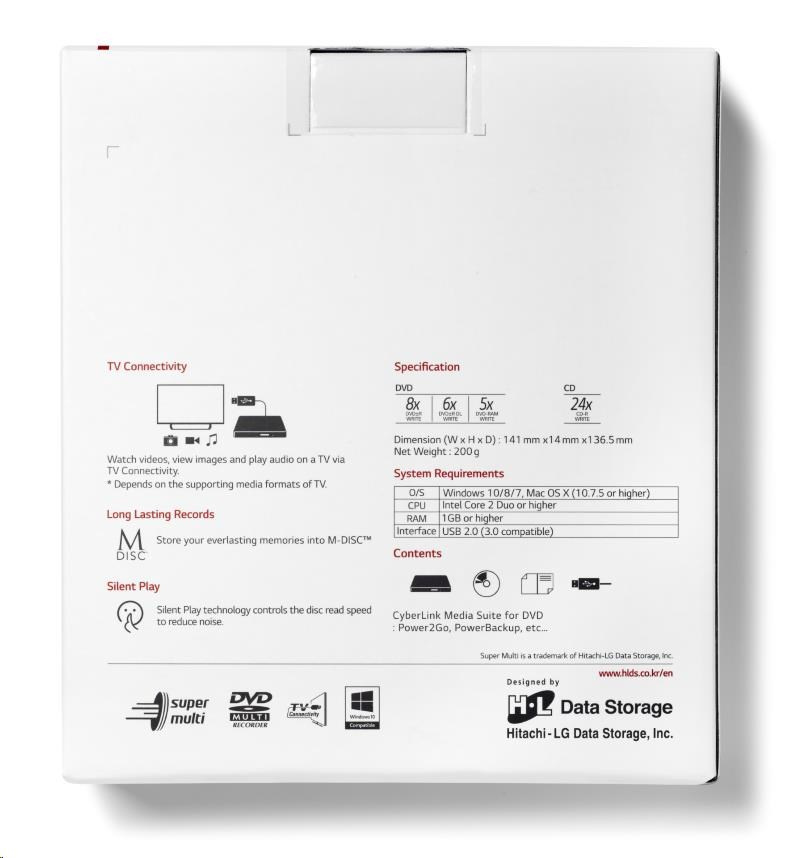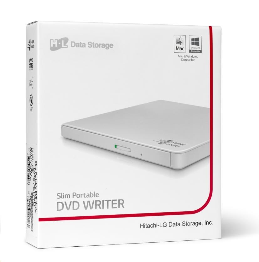 HITACHI LG - externí mechanika DVD-W/CD-RW/DVD±R/±RW/RAM GP57EW40, Slim, White, box+SW