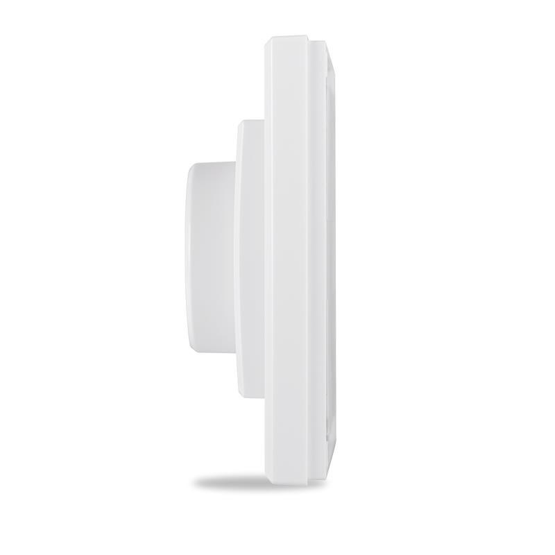 Bezdrátová komunikace a bateriový provoz nabízí možnost jednoduché instalace bez potřeby kabeláže. To znamená, že nástěnný dálkový ovladač lze instalovat přes standardní zápustnou krabici pod omítku nebo umístit volně kdekoliv. Uchycení pomocí montážního materiálu (hmoždinky, šroubky) nebo fixace pomocí dodávaných lepících pásků.