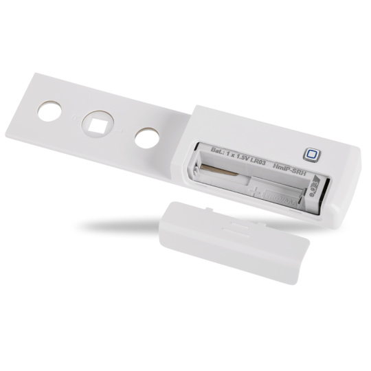 Jeden kus vyměnitelné napájecí baterie typu AAA umožní senzoru efektivně pracovat až po dobu 2 let. Jakmile se sníží kapacita napájecí baterie na minimum, je o tom uživatel předem informován aplikací Homematic IP.