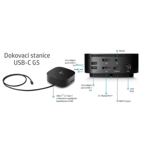 | Co je v krabici | Dokovací stanice HP USB-C Dock G5 Napájecí adaptér 120 W Dokumentace  |