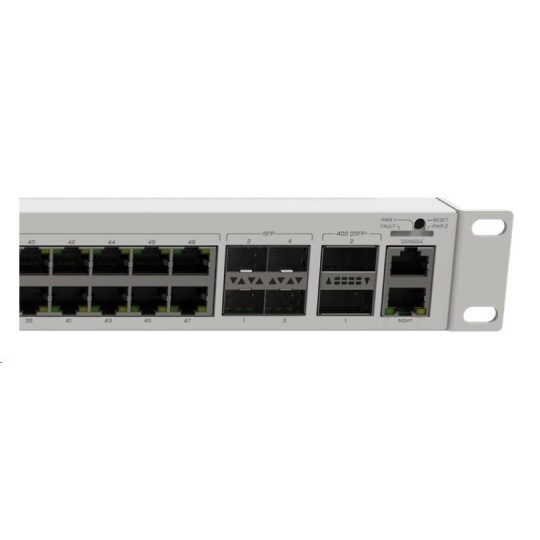 CRS354-48G-4S+2Q+RM má dva integrované zdroje s redundantní funkcí. V případě selhání napájení na primárním zdroji může funkci zastoupí zdroj druhý, který je v tu chvíli již připraven. Výpadek jednoho zdroje tedy neohrozí chod vaší sítě.
