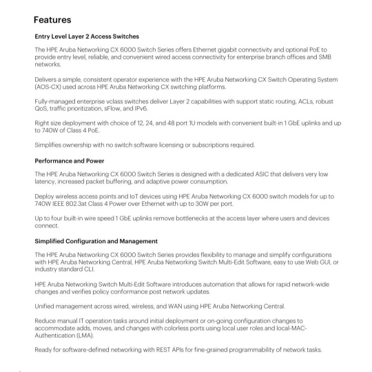 HPE Aruba Networking CX 6000 8p 10M/100M/1G Class4 PoE 2p SFP 1G 67W Switch.