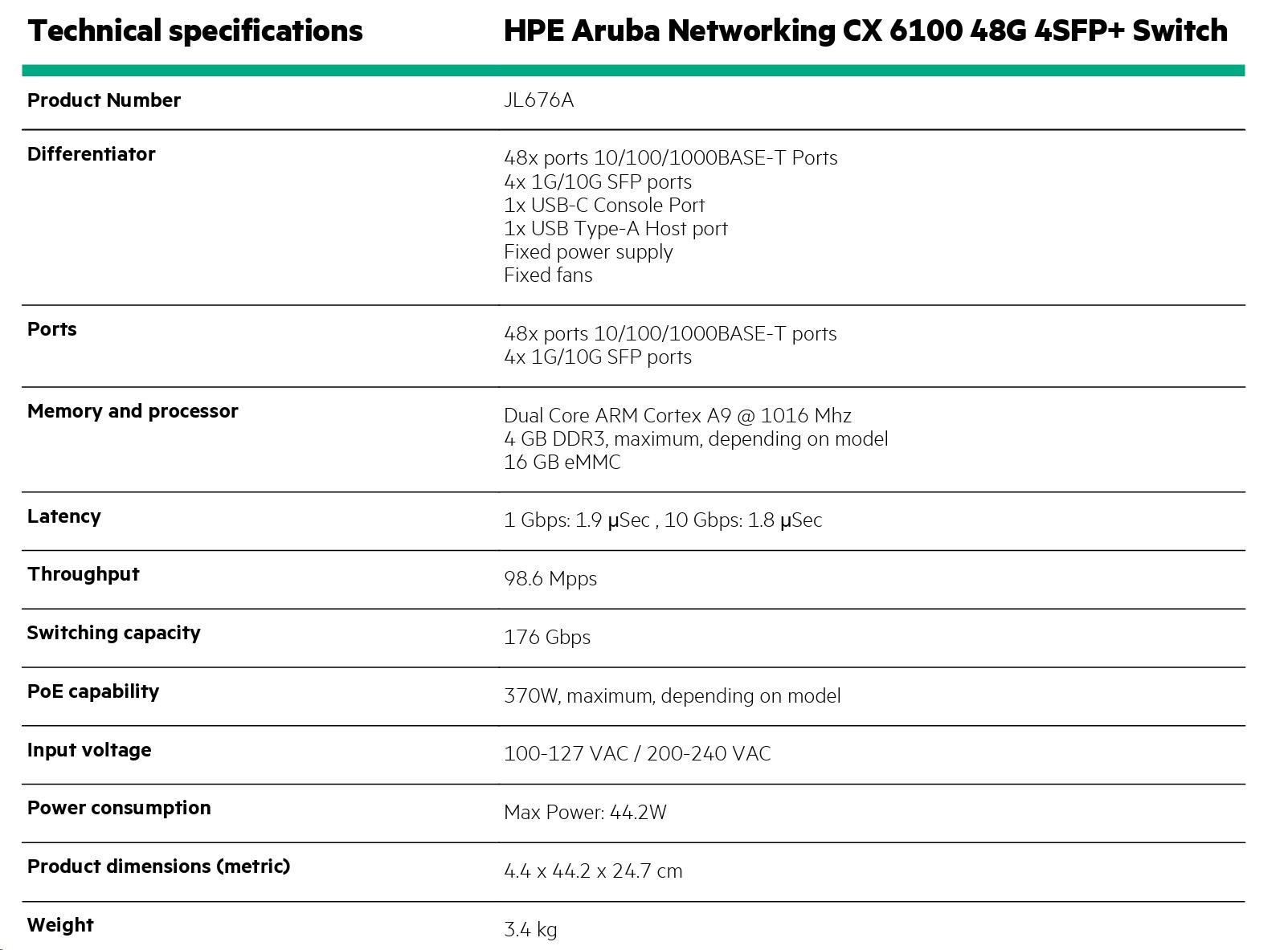 HPE Aruba Networking CX 6100 48G 4SFP+ Switch RENEW JL676AR#ABB.