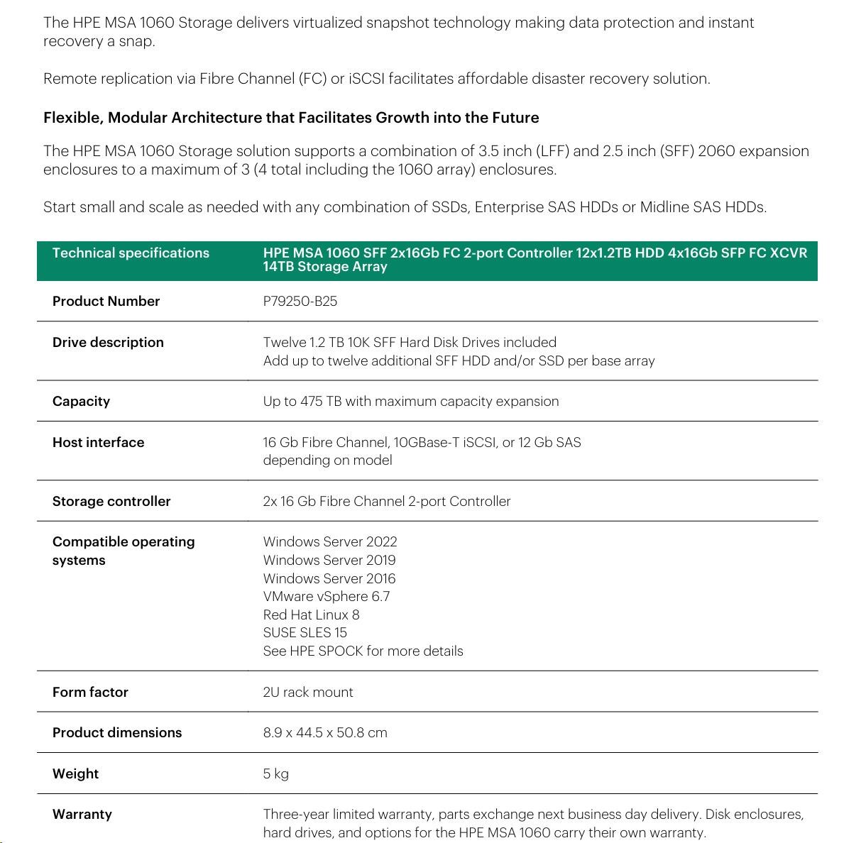 HPE MSA 1060 SFF 2x16Gb FC 2p Array.