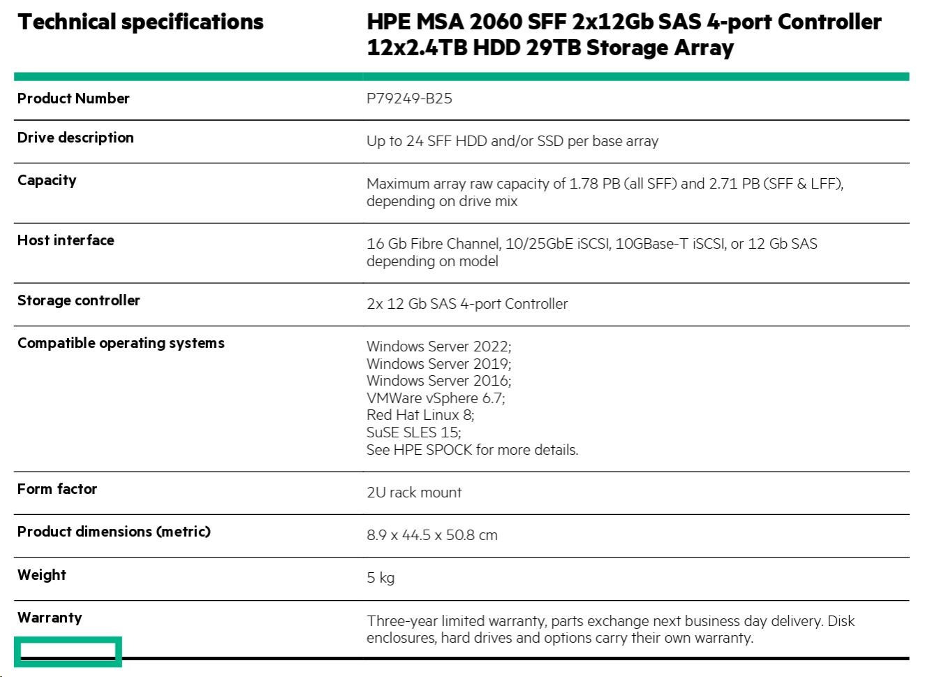 HPE MSA 2060 SFF 2x12Gb SAS 4-port Controller 12x2.4TB HDD 29TB Storage Array.
