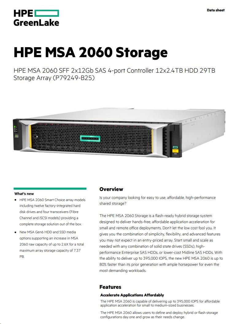 HPE MSA 2060 SFF 2x12Gb SAS 4port Controller 29TB (12x2.4TB) Storage Array Smart Choice