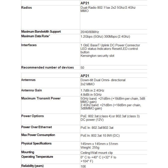 Name HPE Networking Instant On Access Point Dual Radio 2x2 Wi-Fi 6 (RW) AP21
