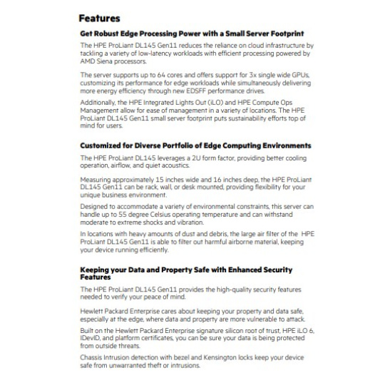 | Chassis | HPE ProLiant DL145 Gen11 Configure-to-order Server |