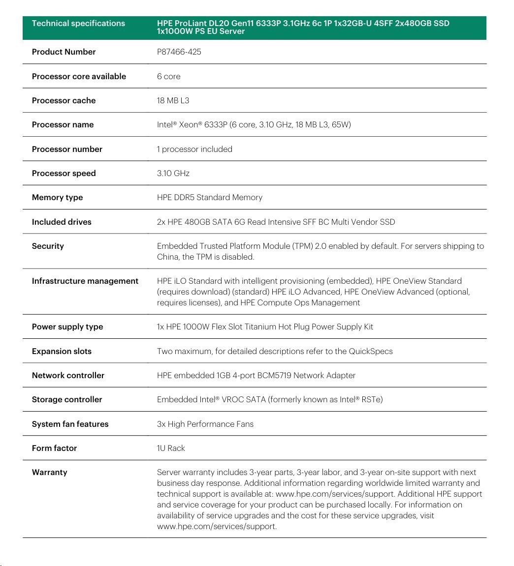 HPE PL DL20g11 6333P (3.1G/6C12T) 1x32G (P64339) 2x480GB VROC 4SFF 1x1000W 4x1G NBD333 Smart Choice