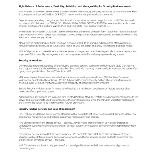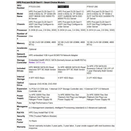 HPE PL DL20g11 E-2434 (3.4G/4C) 1x32G (P64339) 2x480G VROC 4SFF 1x800W 4x1G NBD333 Smart Choice.