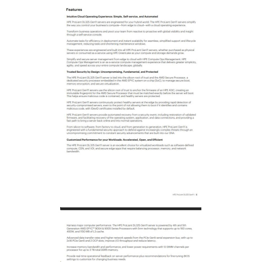 | Management | Default: HPE iLO Standard with Intelligent Provisioning, HPE OneView Standard (requires download) |