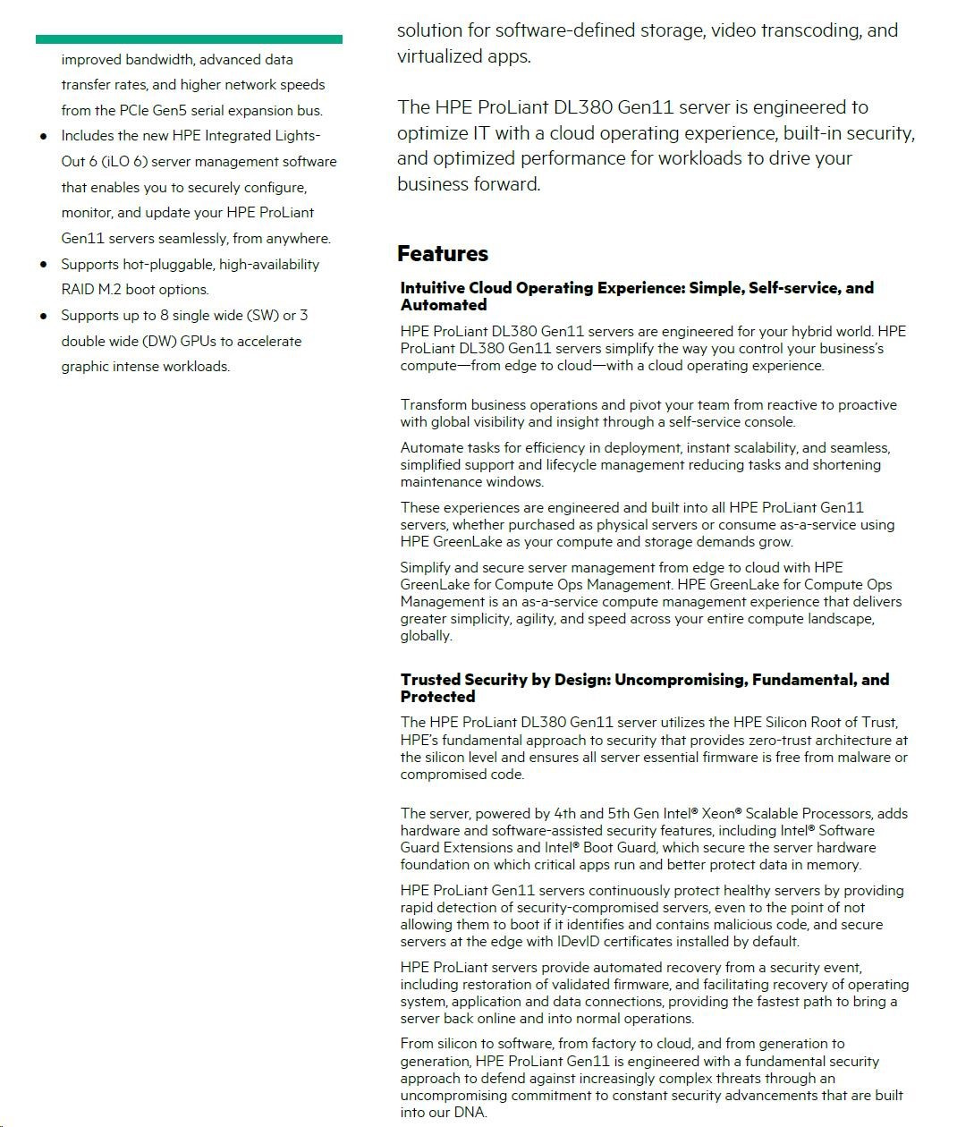 Model Name HPE PL DL380g11 4510 (2.4/12C) 2x32G 2x960G 8SFF MR408i-o 2x1000W 4x1Gb NBD333