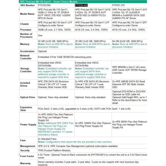 | HPE ProLiant ML110 Gen11 - Smart Choice Models | |
