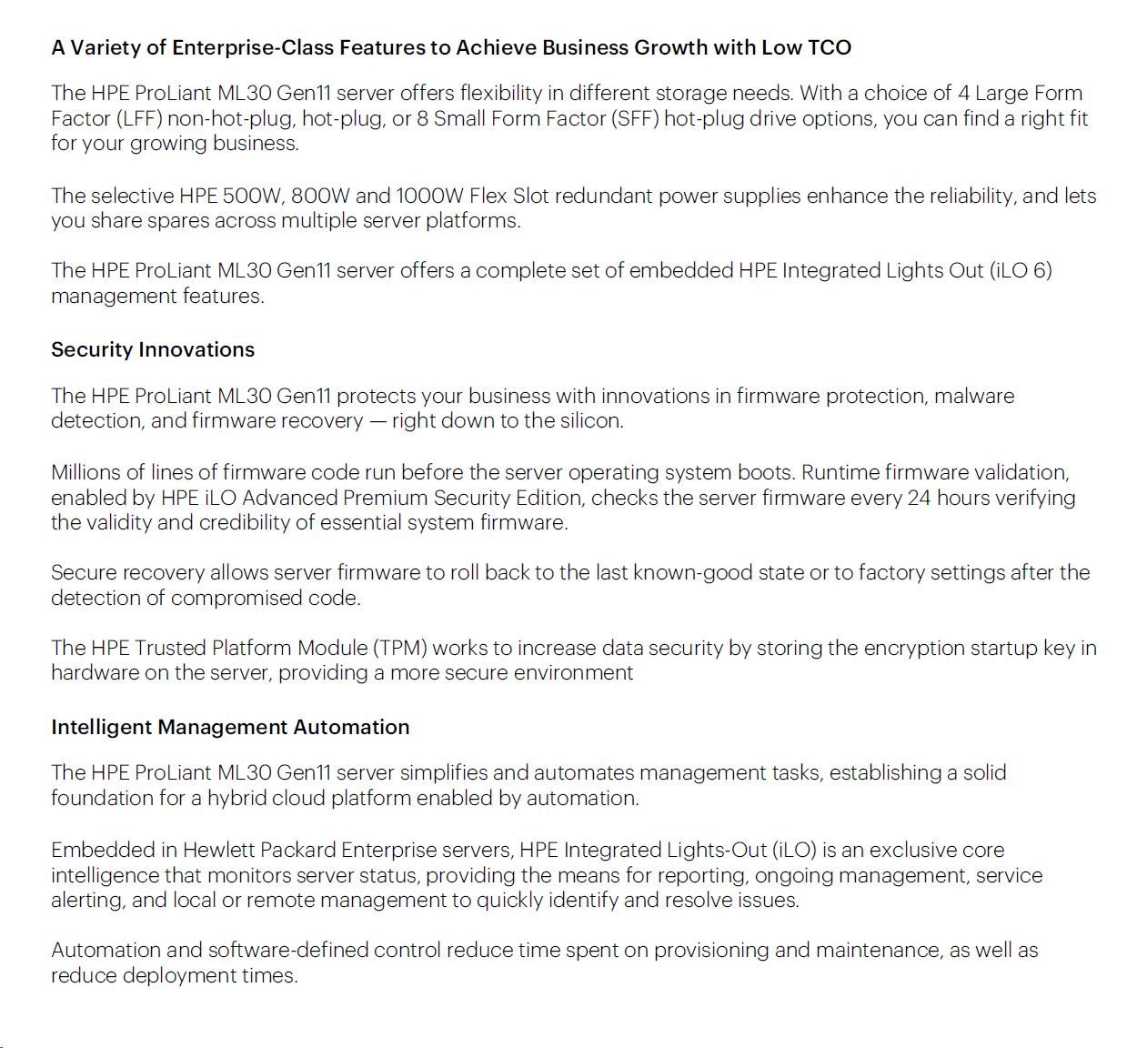 HPE PL ML30g11 6315P (2.8-5.2G/4C4T) 1x32G 2x1TB SATA 4LFF-NHP 1x350 VROC 4p1G NBD311 Smart Choice.