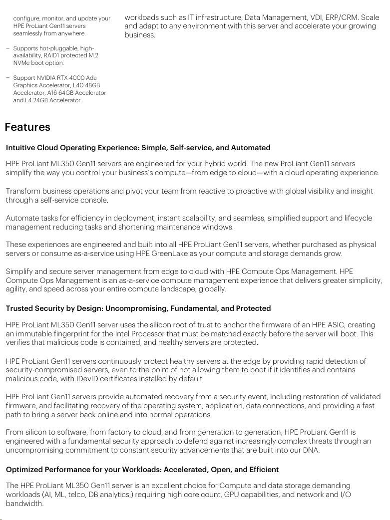 | Chassis | HPE ProLiant ML350 Gen11 LFF Configure-to-order Server |