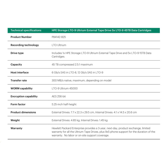 HPE Storage LTO-9 Ultrium External Tape Drive 5x LTO-9 (Q2079A) 45TB Data Cartridges Smart choice.