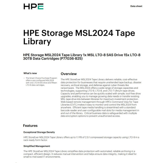 HPE Storage MSL2024 Tape Library (MSL LTO8 SAS Drive + 15x Q2078A LTO8 30TB Data Cartridges + Q2015A BarCodeLabelPack)
