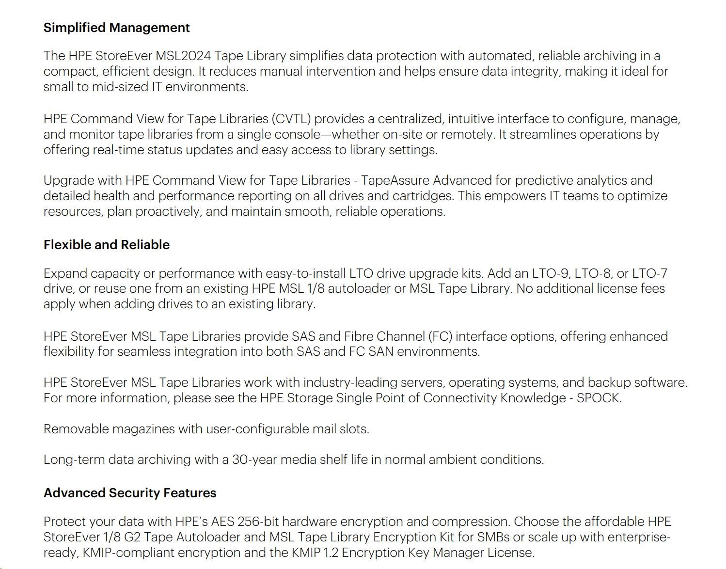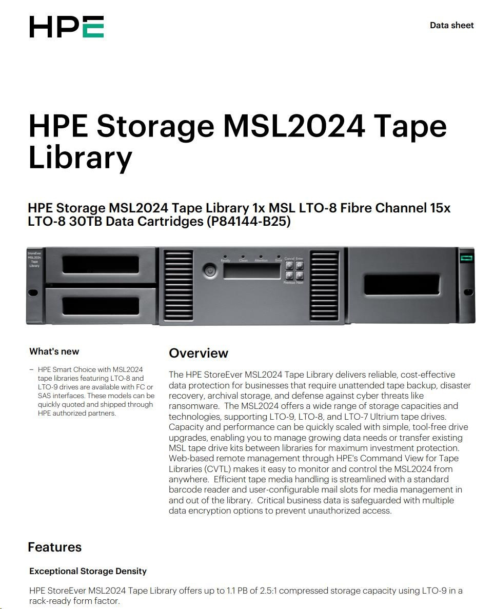 | - HPE Smart Choice MSL2024 library models with LTO- technology available that can be quoted in minutes and shipped quickly through HPE Authorized Partners.