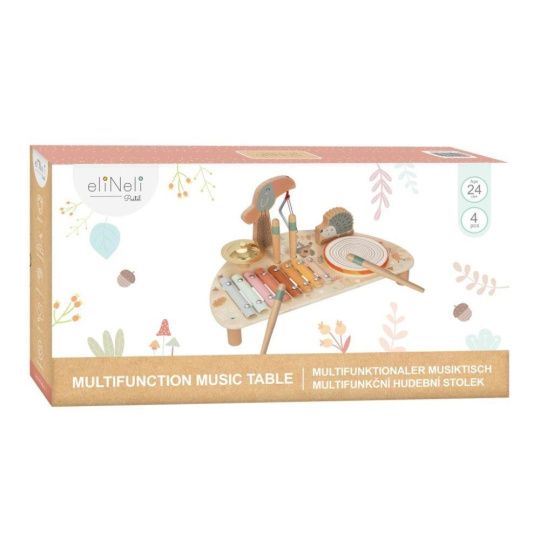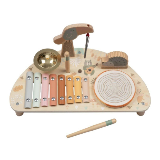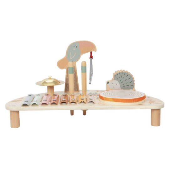 Dřevěný hudební stoleček pro děti se sadou 5 hudebních nástrojů na jednom místě, s krásnou malbou a se zvířátky z lesa, probudí lásku k hudbě v každém dítěti. Hudební stoleček obsahuje základní dětské hudební nástroje, které stimulují smysly, zdokonalují jemnou motoriku, seznámí děti s tím, jaké zvuky který nástroj vydává, jak se na něj hraje..