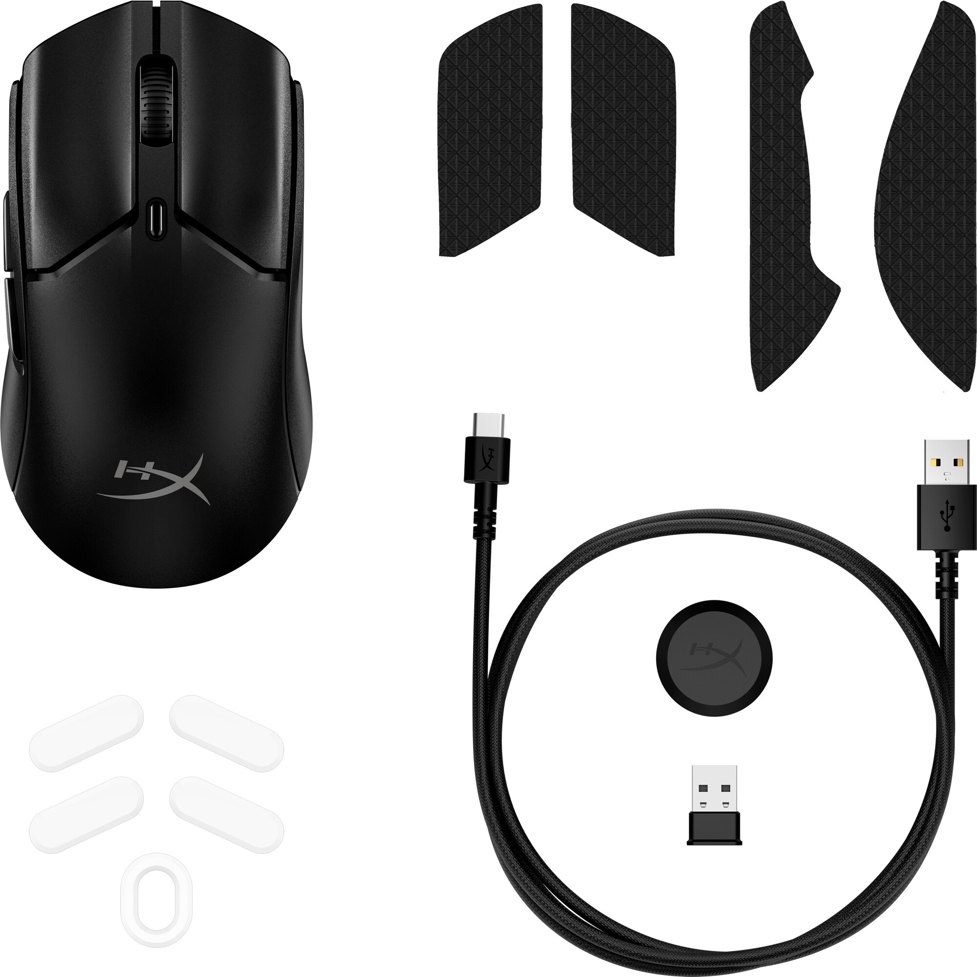 | Obsah balení | HyperX Pulsefire Haste 2 Mini Wireless, protiskluzové pásky HyperX, kluznice s nízkým třením, kabel USB-C na USB-A, bezdrátový USB modul, prodlužovací USB adaptér, úvodní příručka. |