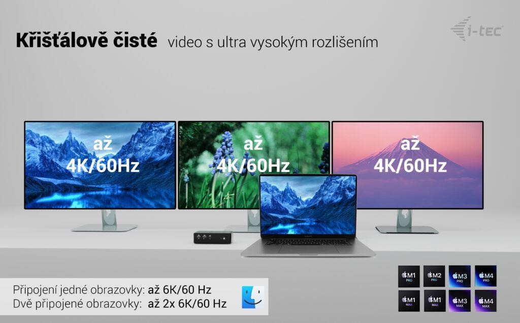 Extrémně vysoký výkon, ultrarychlý přenos dat a podpora rozlišení až 8K/60 Hz. Nejvýkonnější dokovací stanice i-tec na trhu!