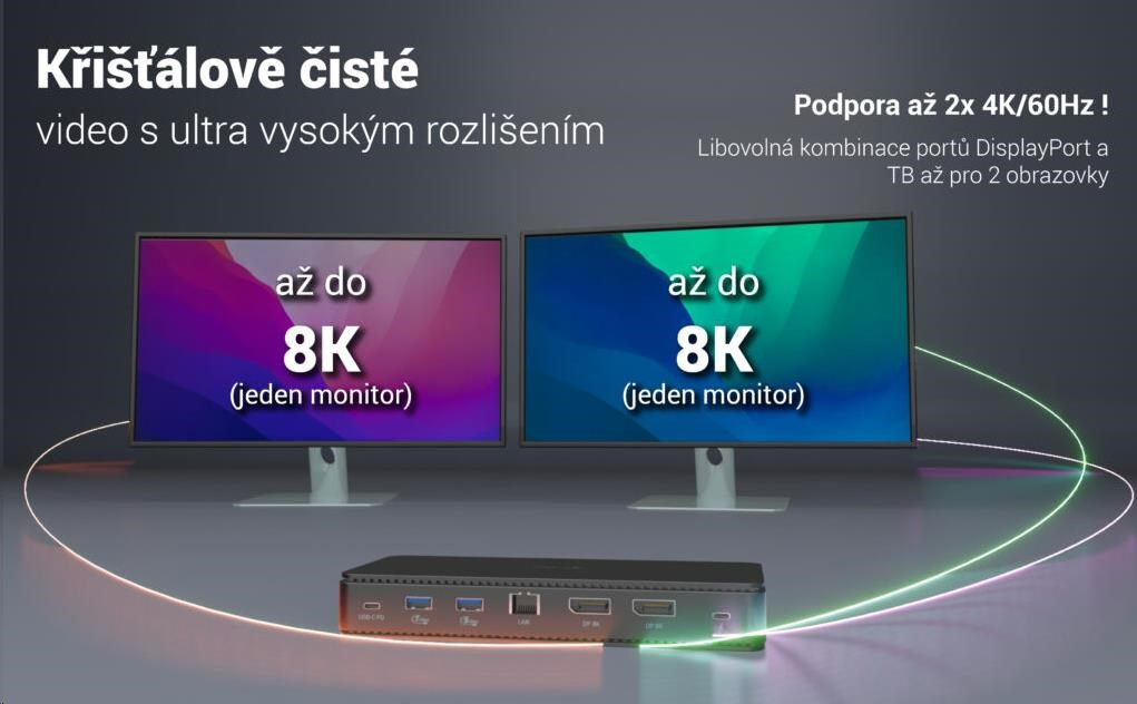 Výjimečný výkon, ultrarychlý přenos dat a podpora rozlišení až 8K. Jedna z nejvýkonnějších dokovacích stanic na trhu!