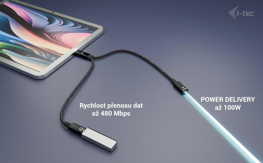 i-tec USB-C Cable Splitter Audio/Data + Power Delivery 100W