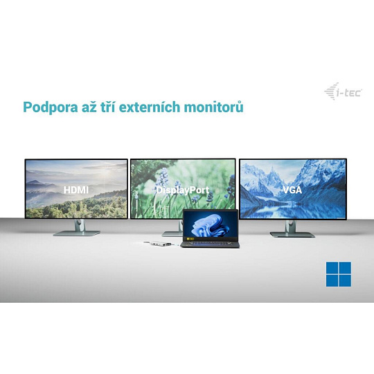 • Podpora až tří monitorů – HDMI, DisplayPort a VGA pro flexibilní rozšíření pracovní plochy
