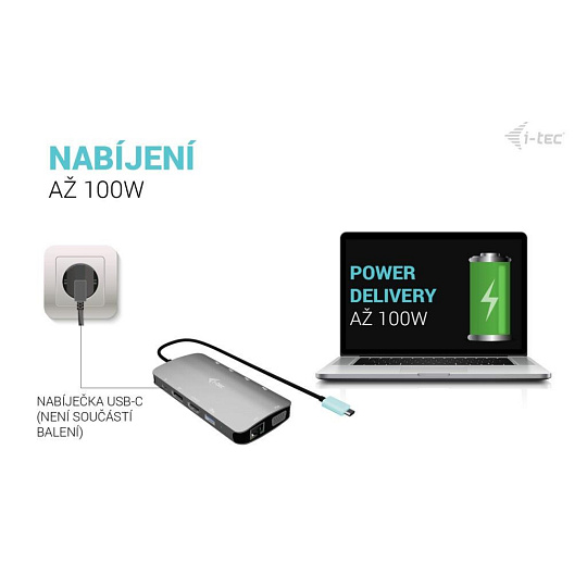 • Power Delivery až 100 W – napájení notebooku přes USB-C
