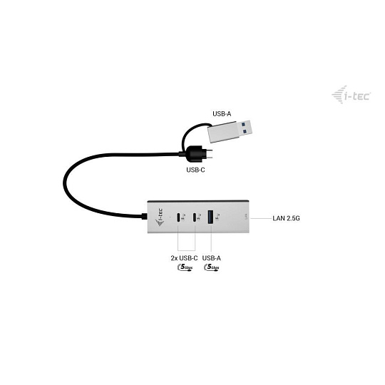 i-tec USB-C/USB-A Metal HUB 3 (2x USB-C, 1x USB-A) Port + 2.5GLAN